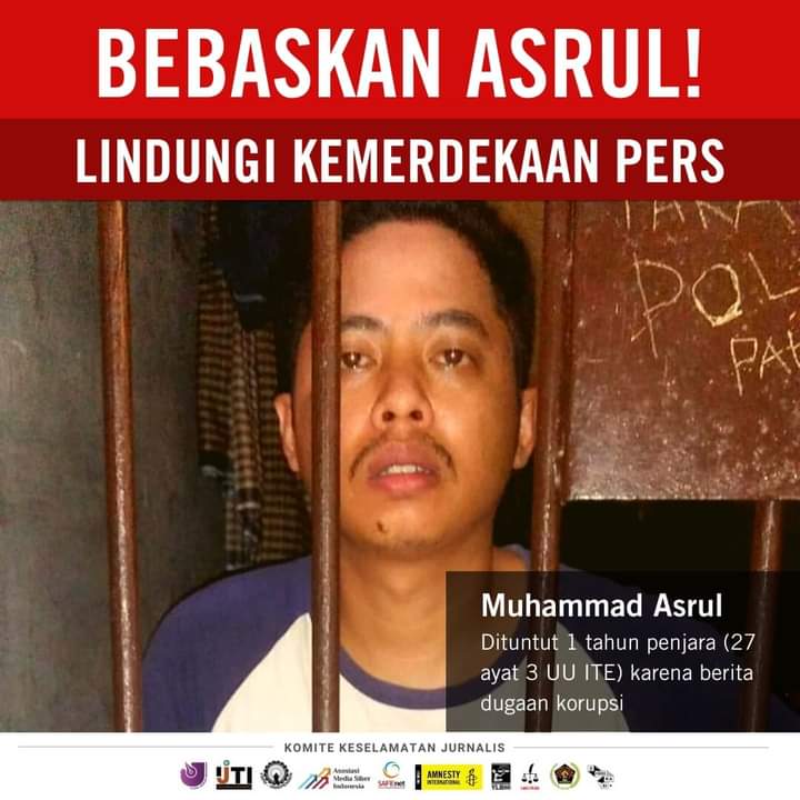PENJURU.ID|SULAWESI SELATAN–Seorang jurnalis di Palopo, Sulawesi Selatan, Muhammad Asrul dijatuhi vonis penjara tiga bulan oleh pengadilan negeri setempat dengan jeratan UU Informasi dan Transaksi Elektronik (ITE) atas berita yang dibuat dan diterbitkan di media massa tempatnya bekerja. Vonis itu dibacakan majelis hakim PN Palopo, pada Selasa kemarin (23/11).