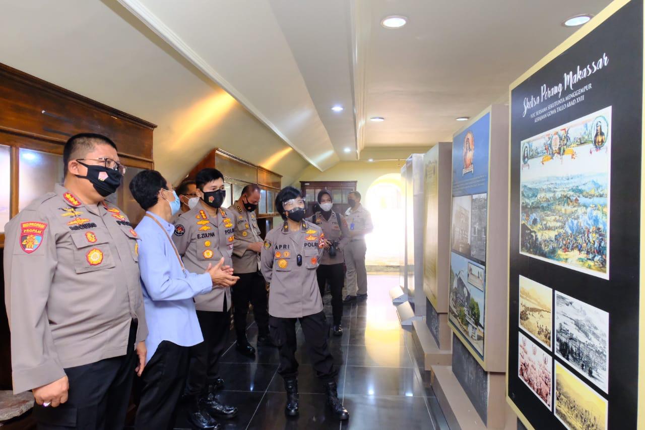 PENJURU. ID | Makassar – Kabid Humas Polda Sulsel Kombes Pol E .Zulpan mendampingi tim dari Pusjarah Mabes Polri mengunjungi Benteng Fort Rotterdam, Meseum La Galigo , dan Makam Pangeran Diponegoro , serta beberapa lokasi sejarah lain, Senin 02 Agustus 2021.
