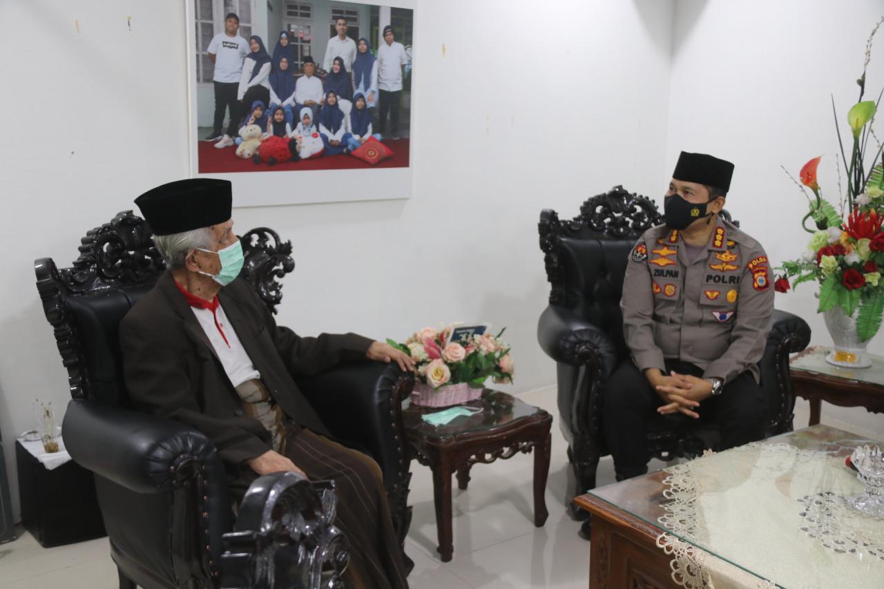 PENJURU ID | Makassar – Kabid Humas Polda Sulsel Kombes Pol E.Zulpan, S.i.k.,M.Si bersilaturrahmi ke Ketua Majelis Ulama Indonesia (MUI) Sulawesi Selatan Anre Gurutta (AGH), KH Sanusi Baco di Jalan Kelapa Tiga, Makassar, Selasa (23/2/2021).