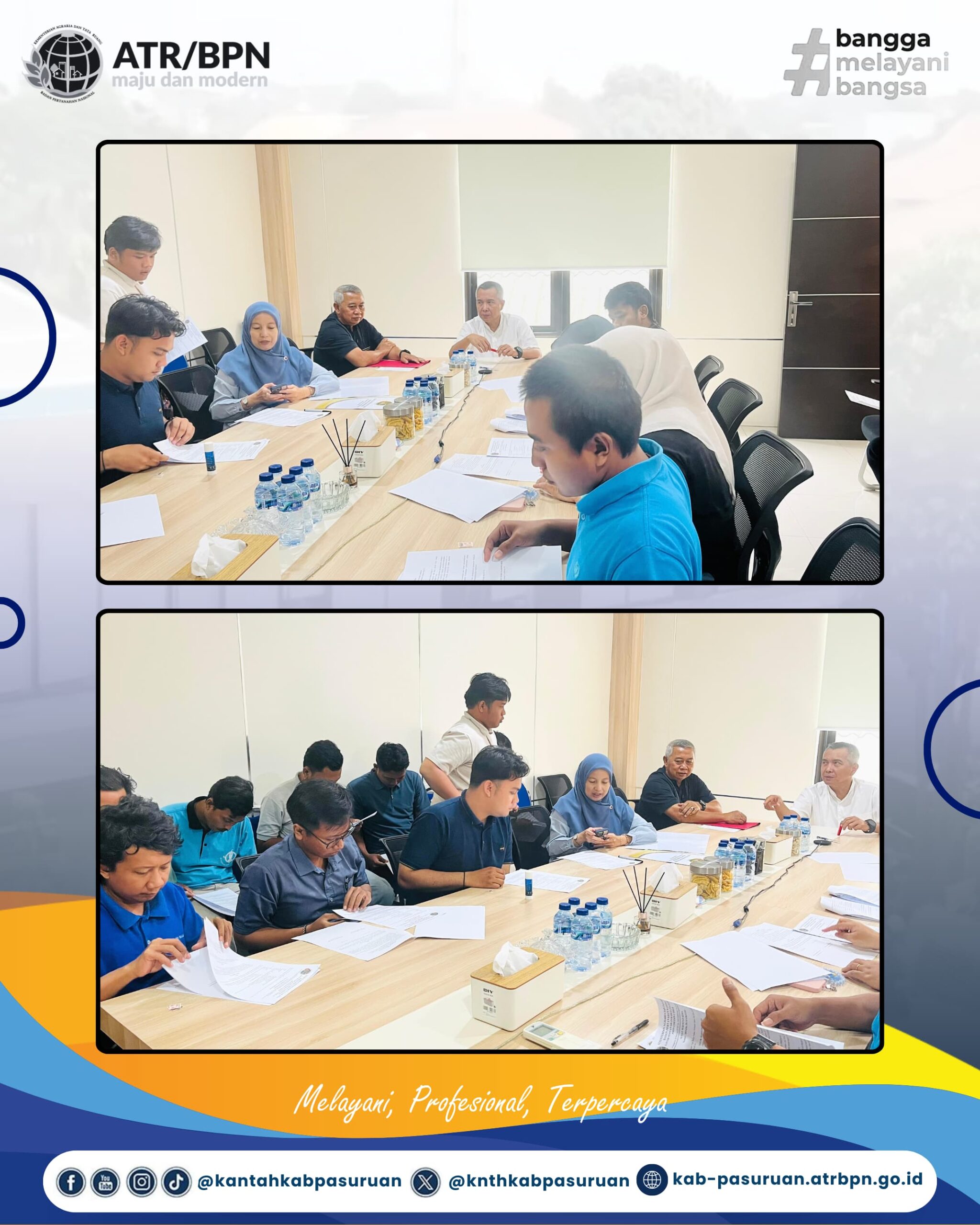 Kegiatan tersebut berlangsung di ruang rapat Kepala Kantor Pertanahan Kabupaten Pasuruan dengan dihadiri oleh Kepala Kantor Pertanahan Kabupaten Pasuruan, jajaran pejabat pengawas serta para peserta yang lolos seleksi.