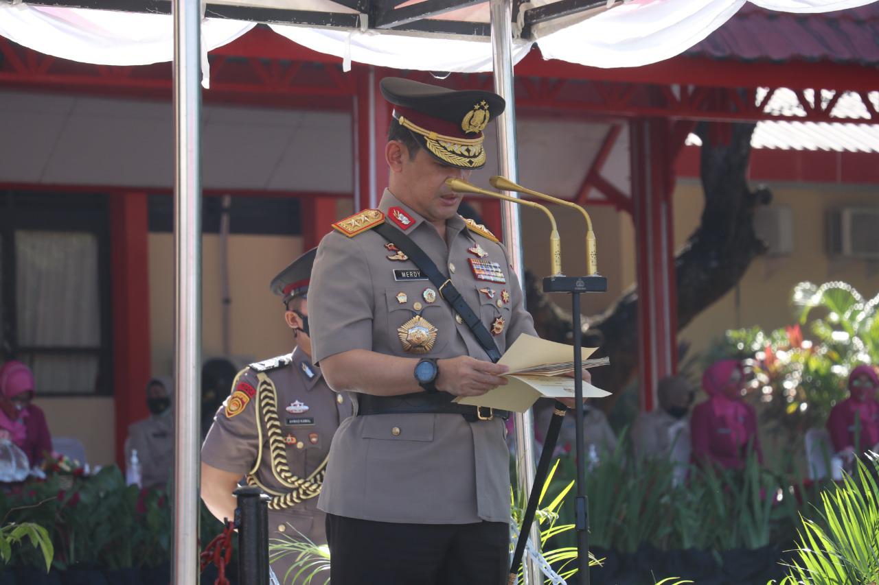 Dalam kesempatan tersebut, Kapolda Sulsel Irjen. Pol. Drs. Merdisyam membacakan sambutan Kalemdiklat Pol Komjen Pol Prof Dr. H. Rycko Amelza Dahniel