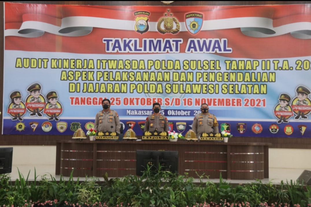 Kabidhumas Polda Sulsel Kombes Pol. E. Zulpan, dalam keterangan tertulis mengatakan taklimat awal audit kinerja itwasda Polda Sulsel tahap II tersebut meliputi aspek pelaksanaan dan pengendalian TA. 2021.