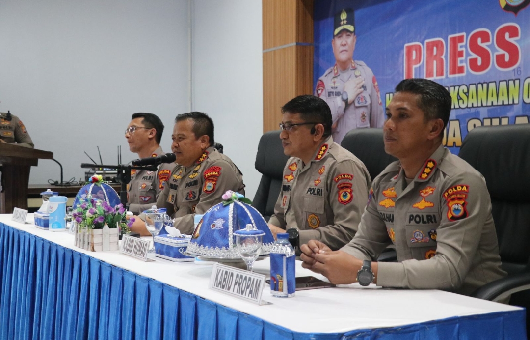 PENJURU. ID | Jeneponto – Kapolda Sulsel Irjen Pol Drs. Setyo Boedi Moempoeni Harso, S.H., M.Hum menggelar Konferensi Pers hasil Operasi Patuh Pallawa 2023 di Aula Biru Ditlantas Polda Sulsel, Senin (24/07/23).