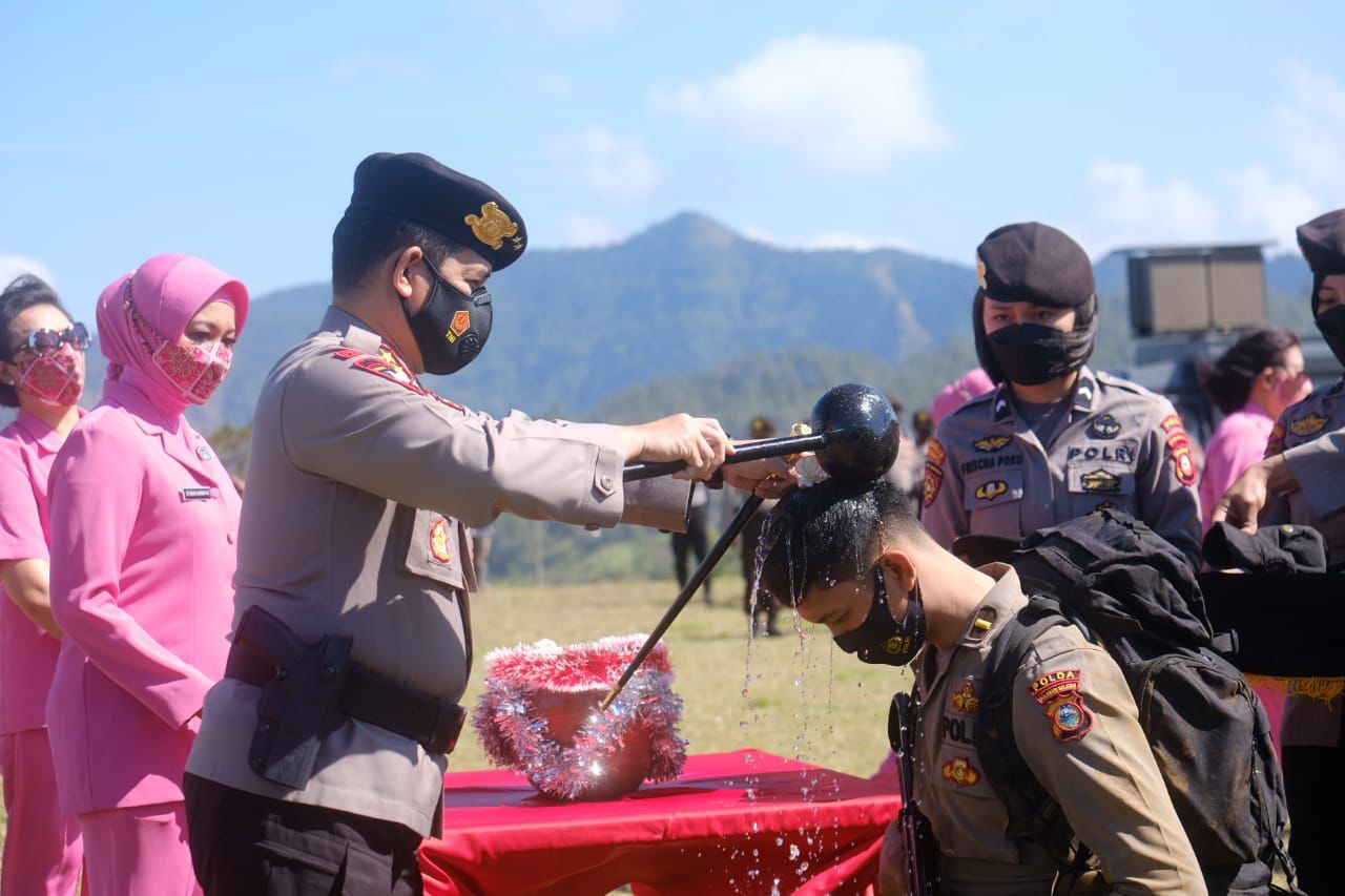 PENJURU. ID | Sulsel – Kapolda Sulsel Irjen Pol Merdisyam memimpin upacara pembaretan terhadap personel Bintara Remaja Angkatan 45 TA. 2021, Direktorat Samapta Polda Sulsel., Sabtu (18/09/2021) di lapangan Lingkungan Batu Lapisi Dalam Kecamatan Tinggi Moncong, Kabupaten Gowa.