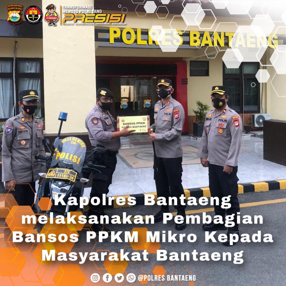 Sedangkan Kapolres Bantaeng, AKBP Rachmat Sumekar SIK, M.Si.,didampingi Waka Polres Bantaeng saat menyerahkan secara simbolis paket Bansos PPKM sebanyak 100 paket menyampaikan bahwa Polres Bantaeng mulai membagikan bansos untuk warga yang terdampak PPKM Mikro.