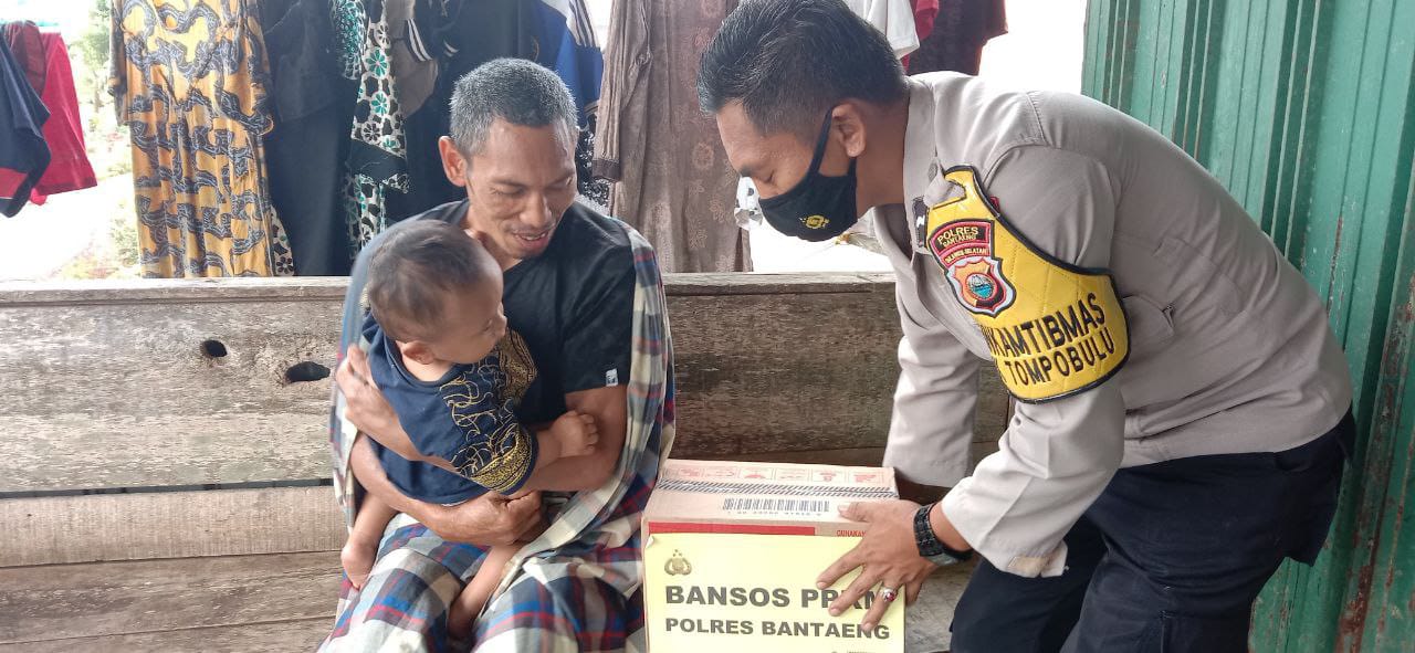 “Polres Bantaeng hadir membagikan Bansos, dalam bentuk kepedulian terhadap masyarakat yang terdampak”, Kata Suhardi Hasyim, SH, Kasat Binmas Polres Bantaeng.