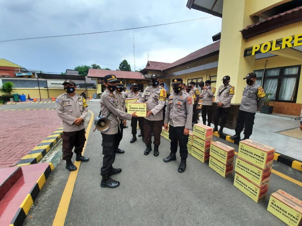 PENJURU. ID | Bantaeng – Polres Bantaeng menyalurkan Bantuan Sosial (Bansos) PPKM Kepada masyarakat terdampak melibatkan 32 Bhabinkamtibmas disemua desa dan kelurahan di Kabupaten Bantaeng, Sabtu (17/07/2021).