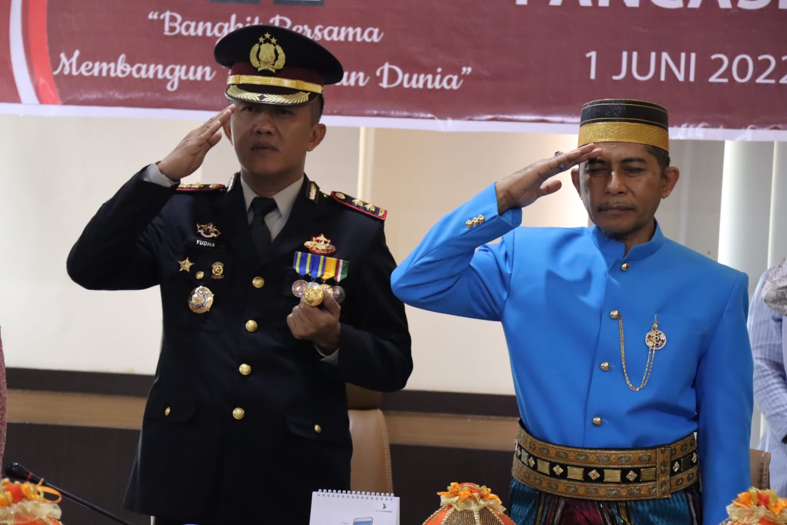 PENJURU. ID | Jeneponto – Kapolres Jeneponto AKBP Yudha Kesit Dwijayanto hadir di upacara peringatan hari pancasila tahun 2022 berlangsung di Ruang Kerja Sekda Kantor Bupati Jeneponto, Rabu (01/06/2022)