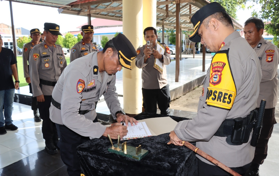 Diakhir, Kapolres Jeneponto melakukan Penyerahan Dipa kepada para Kabag, Kasat, Kasi dan Kapolsek sekaligus penandatanganan Pakta Integritas. (*)