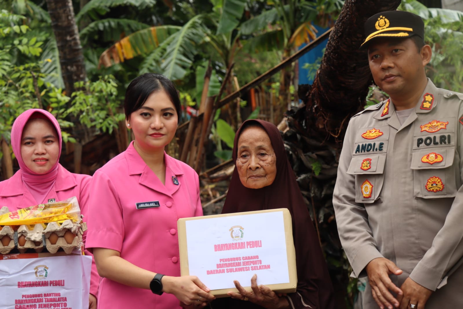 PENJURU.ID | Jeneponto – Kapolres Jeneponto AKBP Andi Erma Suryono, S.H.,S.I.K didampingi Ketua Bhayangkari Ny.Elli Andi menyerahkan bantuan kepada korban bencana alam angin puting beliung yang menerpa salah satu dusun di desa bontosunggu, Rabu (04/01/2023)