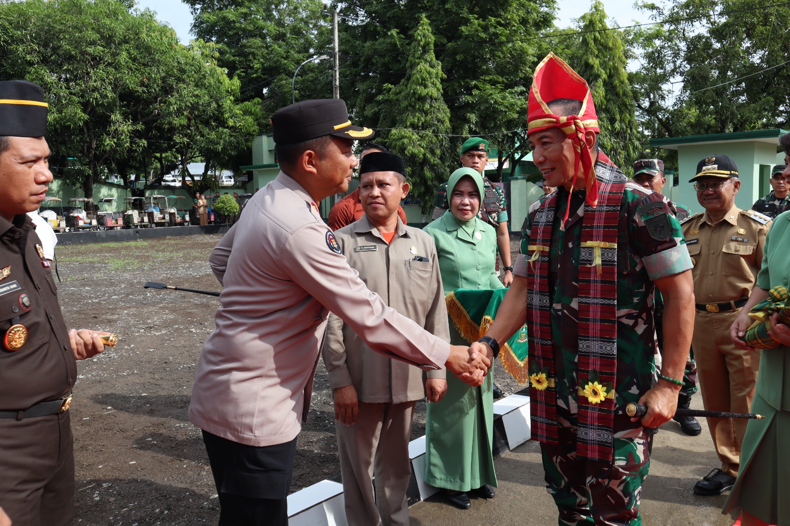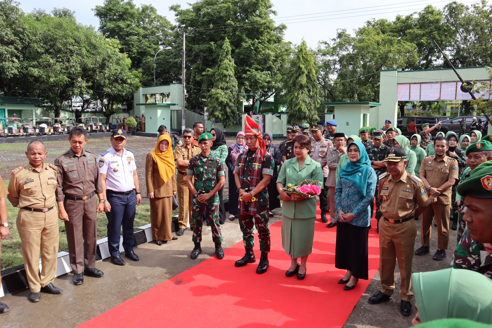 PENJURU. ID | Jeneponto – Mayjen TNI Dr. H. Totok Imam Santoso, S.I.P., S.Sos., M.Tr.(Han) (Pangdam XIV/Hsn) didampingi Ny. Desi Totok Imam Santoso (Ibu Ketua Persit Kartika Chandra Kirana Daerah XIV/Hsn) beserta rombongan tiba di Makodim 1425/JP.