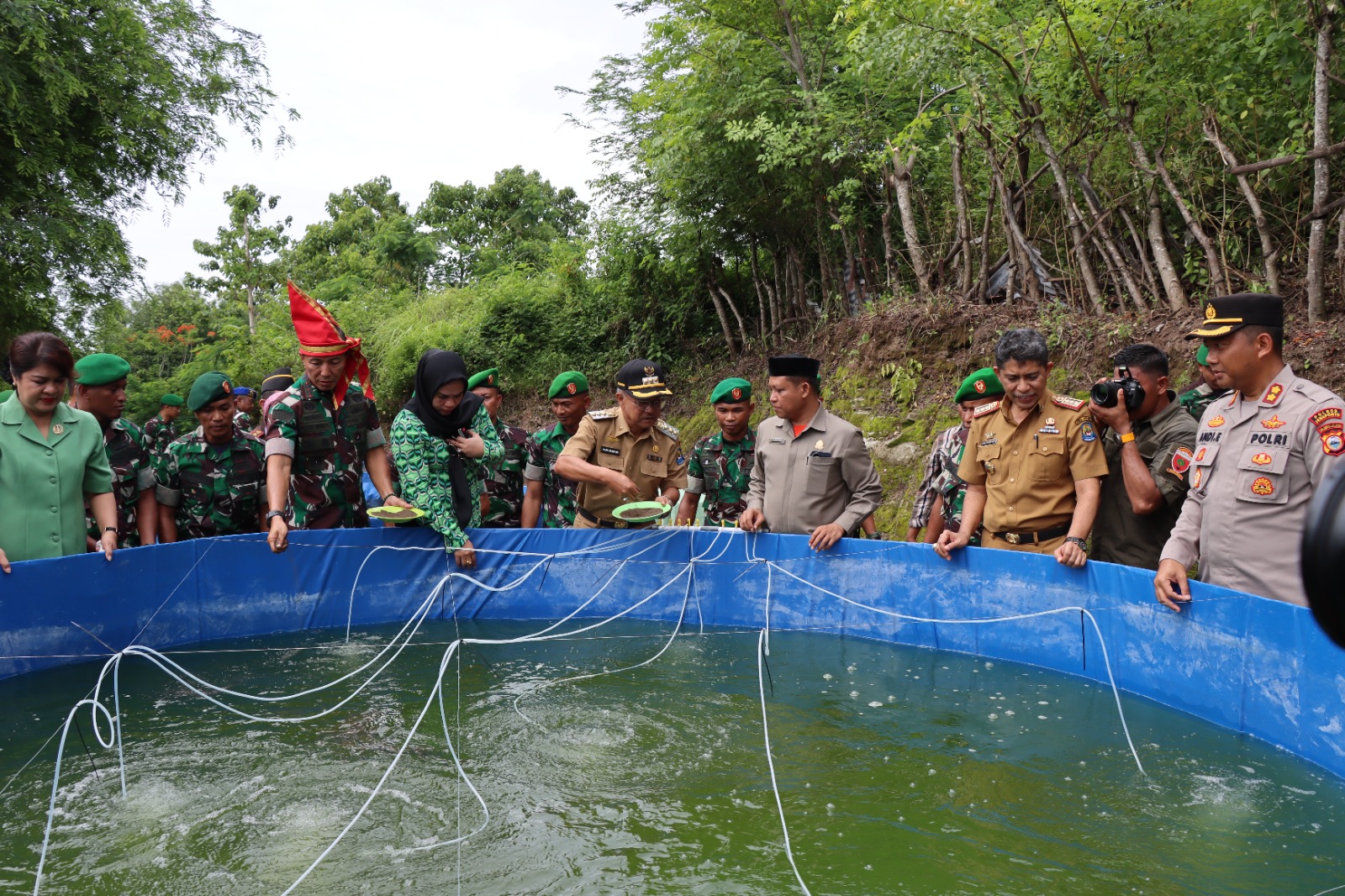 Pukul 09.50 Wita, Pangdam XIV/Hsn didampingi Ibu Ketua Persit Kartika Chandra Kirana Daerah XIV/Hsn beserta rombongan didampingi Forkopimda menyerahkan bingkisan sembako kepada anak stunting dan tukang becak hingga Pukul 10.10 Wita, selanjutnya bersama Forkopimda menuju kolam ikan Kodim 1425/Jeneponto dilanjutkan penaburan benih ikan.