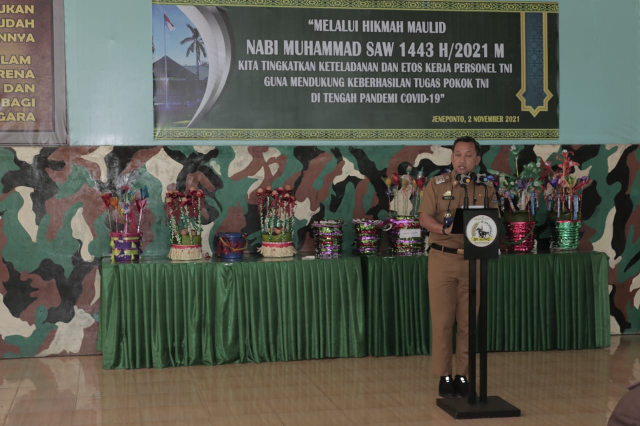 Turut hadirkegiata dalam kegiatan peringatan Maulid Nabi Muhammad SAW di Makodim 1425 Jeneponto, Dandim 1425 Jeneponto Letkol Inf Gustiawan Ferdianto S.IP., Ketua DPRD Jeneponto H.Arifuddin, Wabup Jeneponto H.Paris Yasir, SE., Kajari Jeneponto Susanto Gani,SH., Ketua Pengadilan Negeri Jeneponto Patanuddin, SH, MH., Sejumlah Undangan Dan Segenap Pers Kodim 1425 Jeneponto.