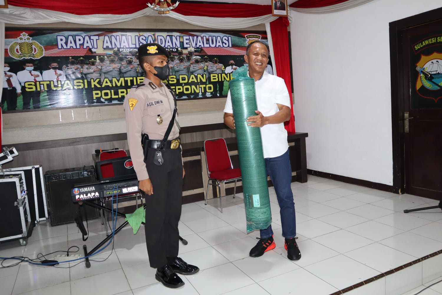 Kegiatan ramah tamah dan perpisahan siswa SPN Polda Sulsel juga diserahkan cendramata dari para siswa kepada polres jeneponto berupa karpet salat dan mic untuk peruntukan Masjid Nur Ar Syurti mapolres jeneponto yang di serahkan perwakilan siswa Agil Dwimanggala kepada Kapolres Jeneponto.