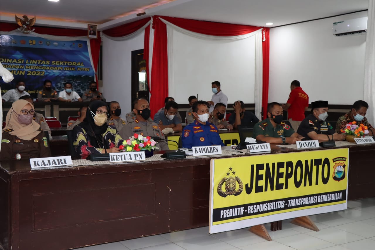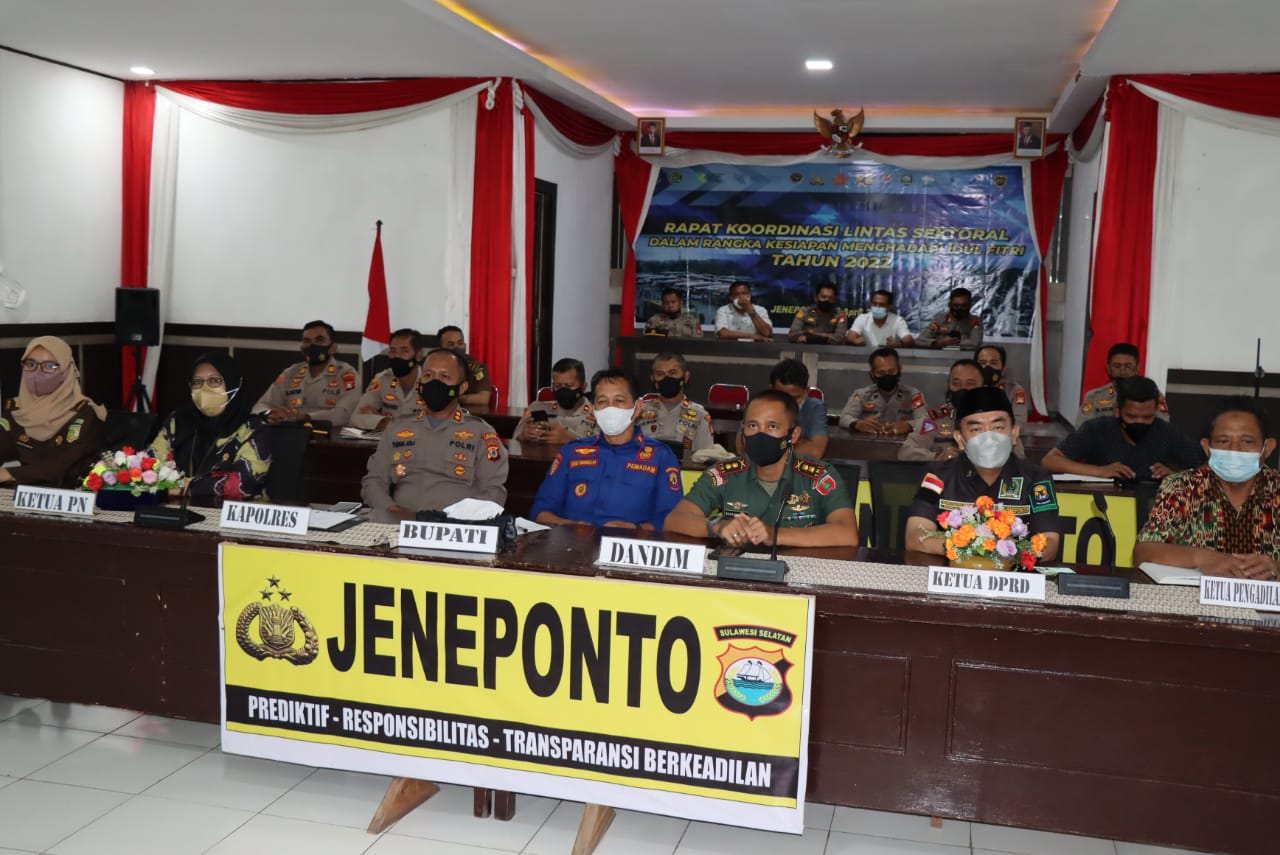 PENJURU. ID | Jeneponto – Kapolres Jeneponto AKBP Yudha Kesit Dwijayanto, SH, S.I.K mengikuti Vidcon Bapak Kapolri dalam rangka Rakor Lintas Sektoral kesiapan Pengamanan Idul Fitri 1443 H/ Tahun 2022 termasuk arus mudik dan arus balik.