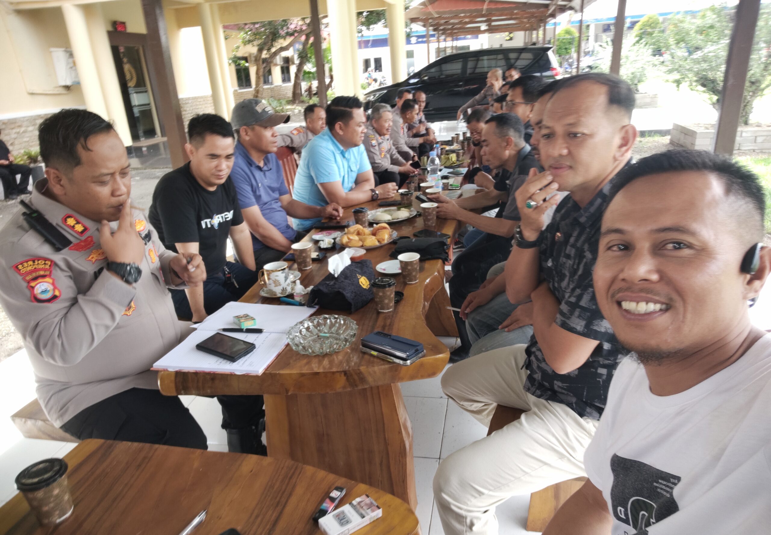 Kegiatan berlangsung dengan dialog ringan dan diskusi santai, mencerminkan hubungan harmonis antara Polri dan media di Jeneponto.
