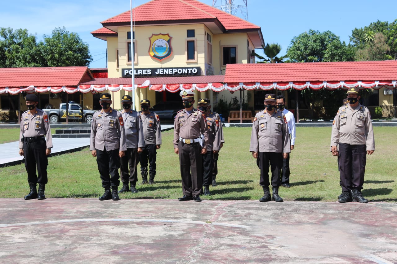 Melalui Surat Telegram dari Kapolri, Kapolres Jeneponto, AKBP Yudha Kesit Dwijayanto memimpin langsung upacara cipta hening yang dilaksanakan di Halaman Mapolres Jeneponto.