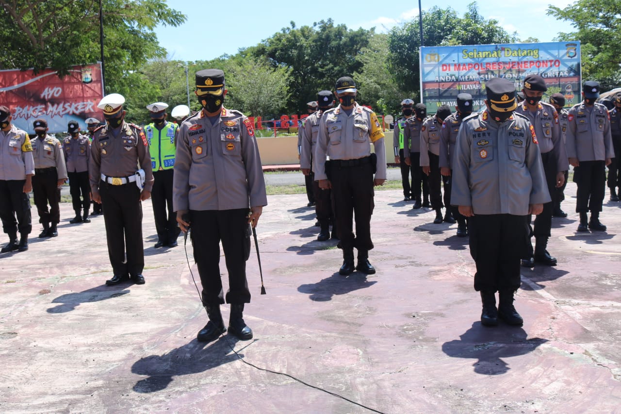 PENJURU. ID | Jeneponto – Menyikapi Perkembangan COVID-19 yang semakin meningkat, sesuai surat edaran Kementrian Agama Republik Indonesia (Kemenag RI) melalui Surat Telegram Kapolri dengan meminta seluruh jajaran Polri untuk melakukan Upacara Hening Cipta dirangkaikan doa bersama jajaran dan seluruh lapisan masyarakat.