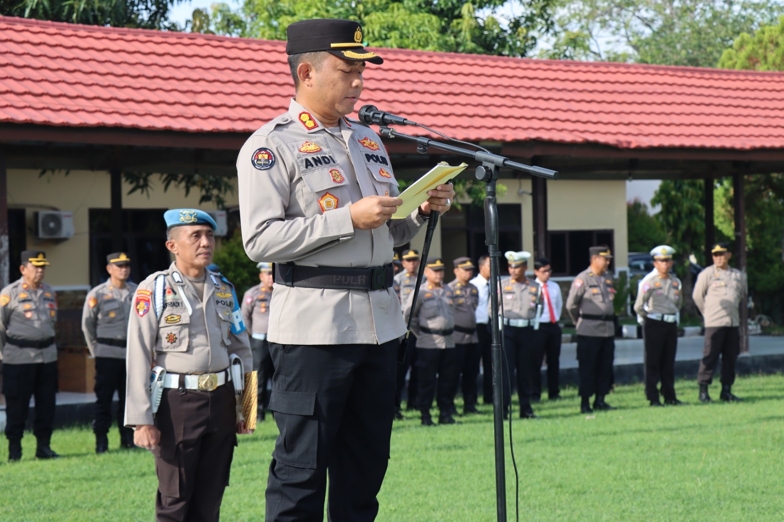 Upacara korps raport kenaikan pangkat pengabdian dari Aiptu ke Ipda TMT 1 April 2023 dihadiri oleh Waka Polres, para PJU dan para Kapolsek kajaran serta bintara di lingkungan Polres Jeneponto.