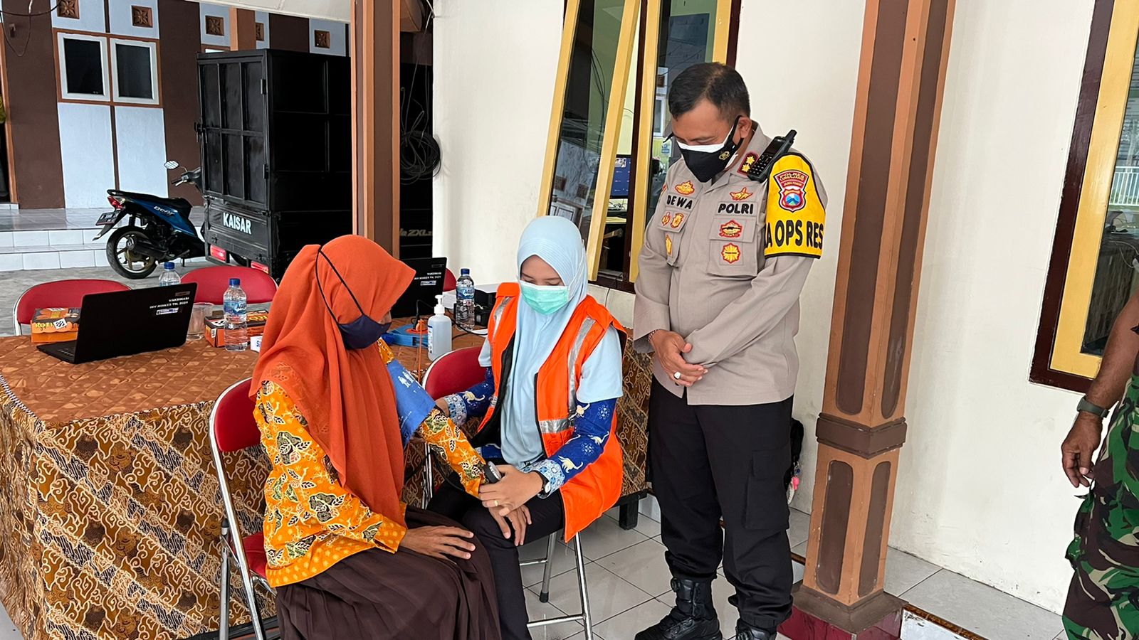 PENJURU.ID| Lumajang – Kapolres Lumajang AKBP Dewa Putu Eka D, S.I.K,. M.H. menghadiri vaksinasi serentak di Balai Desa Kaliwungu, kecamatan Tempeh, Kabupaten Lumajang. Jumat (11/03/2022).