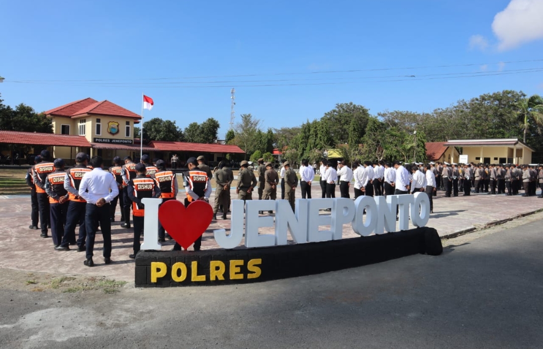Apel ini dipimpin langsung oleh Kapolres Jeneponto, AKBP Widi Setiawan, S.I.K., M.I.K., dan dihadiri oleh sejumlah tokoh penting, termasuk Penjabat (PJ) Bupati Jeneponto, Junaedi. B, S.Sos., M.H.