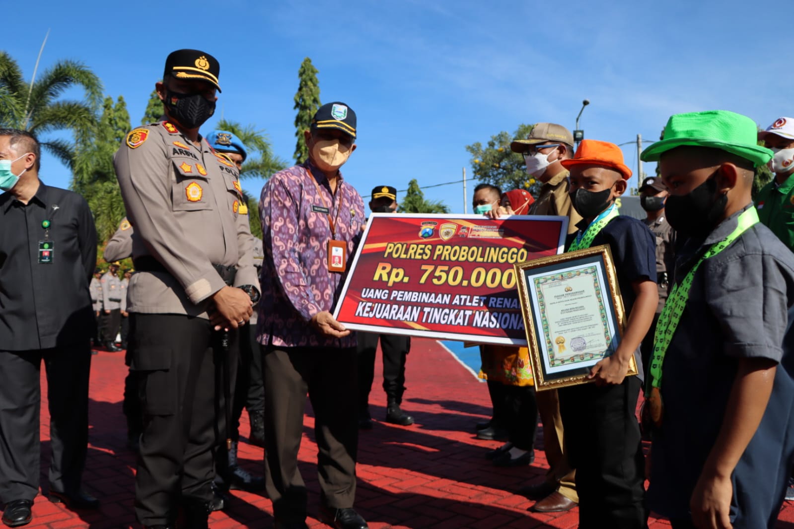 “Terima kasih kepada bapak Kapolres atas penghargaan yang diberikan kepada saya,” ucap Arjuna didampingi adiknya, Rifqi