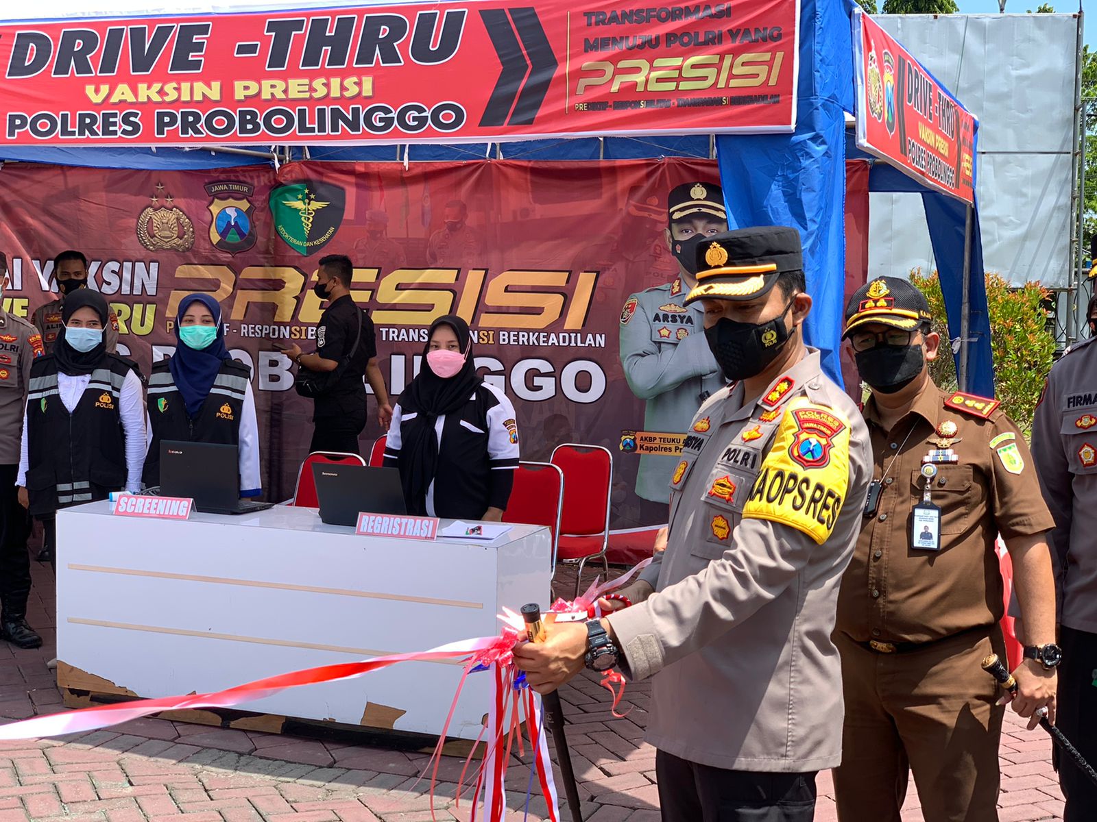 Kapolres Probolinggo, AKBP Teuku Arsya Khadafi melaunching langsung Gerai Vaksin Presisi Drive Thru yang terletak di halaman Mapolres Probolinggo itu, Selasa (19/10/2021).
