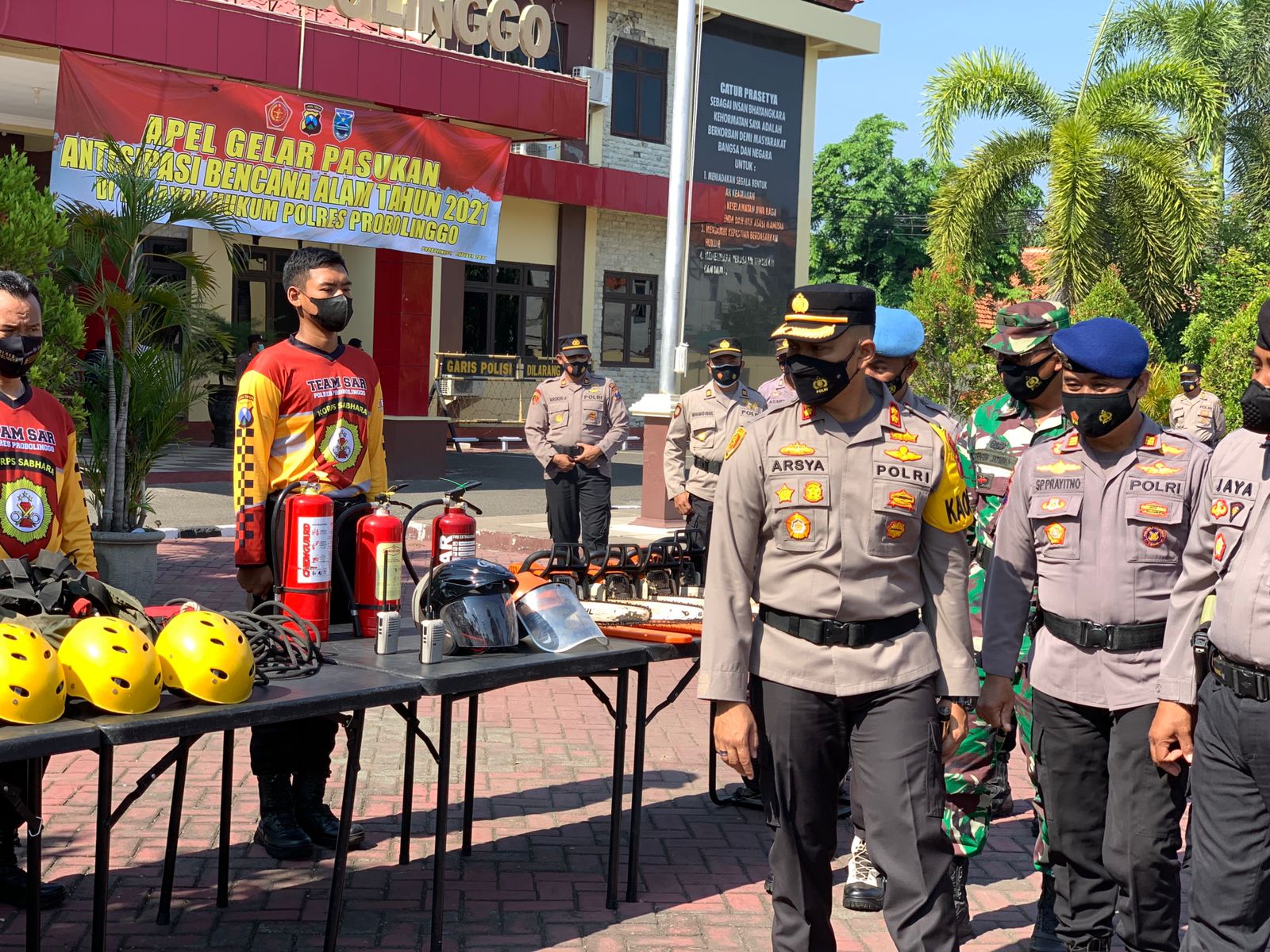 PENJURU.ID | Probolinggo – Antisipasi bencana alam, Kepala Kepolisian Resor Probolinggo AKBP Teuku Arsya Khadafi, memimpin apel gelar pasukan untuk kesiapan penanggulangan bencana di wilayah Kabupaten Probolinggo, Senin (25/10/2021)