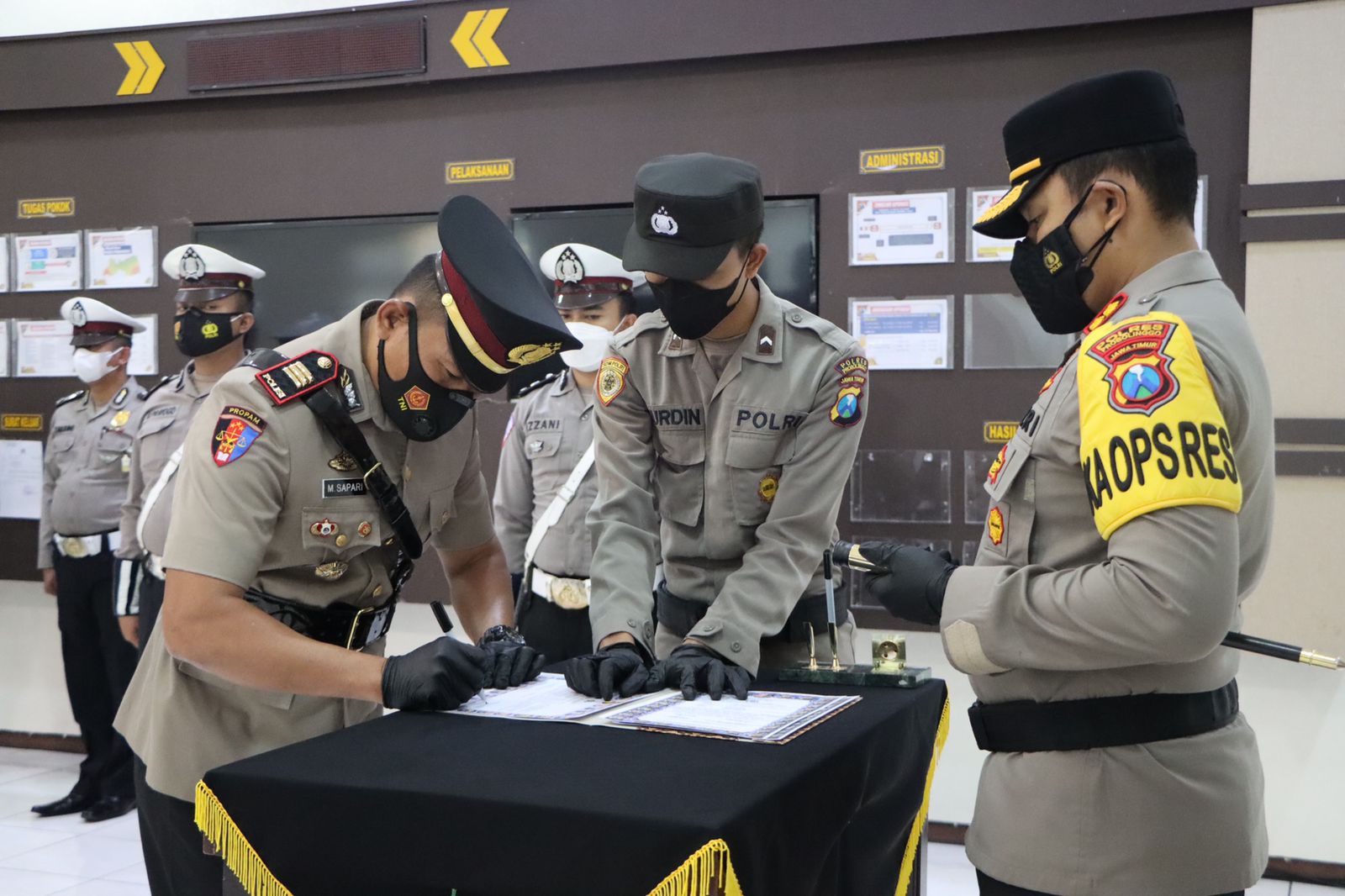 PENJURU.ID | Probolinggo – Kapolres Probolinggo AKBP Teuku Arsya Khadafi memimpin langsung upacara serah terima jabatan (sertijab) Kasat Lantas di Ruang Rupatama Parama Satwika Polres Probolinggo, Kamis (28/07/2022) siang.