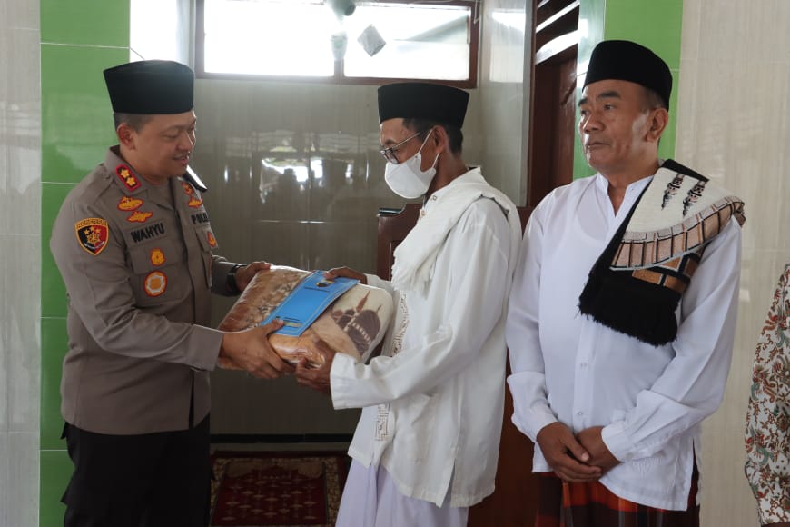 Pada kegiatan tersebut, Kapolres juga menyumbangkan tali asih berupa sajadah kepada takmir dan pengurus Masjid Ar Rahman Tawangsari.