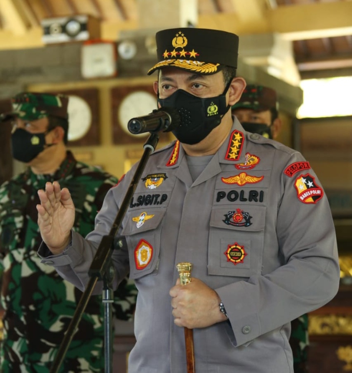 PENJURU. ID | Bali – Kapolri Jenderal Listyo Sigit Prabowo memberikan apresiasi kepada warga dan Forkopimda Bali karena jumlah pasien terpapar Covid-19, yang dirawat di tempat Isolasi Terpusat (Isoter) paling tinggi untuk skala nasional atau se-Indonesia.