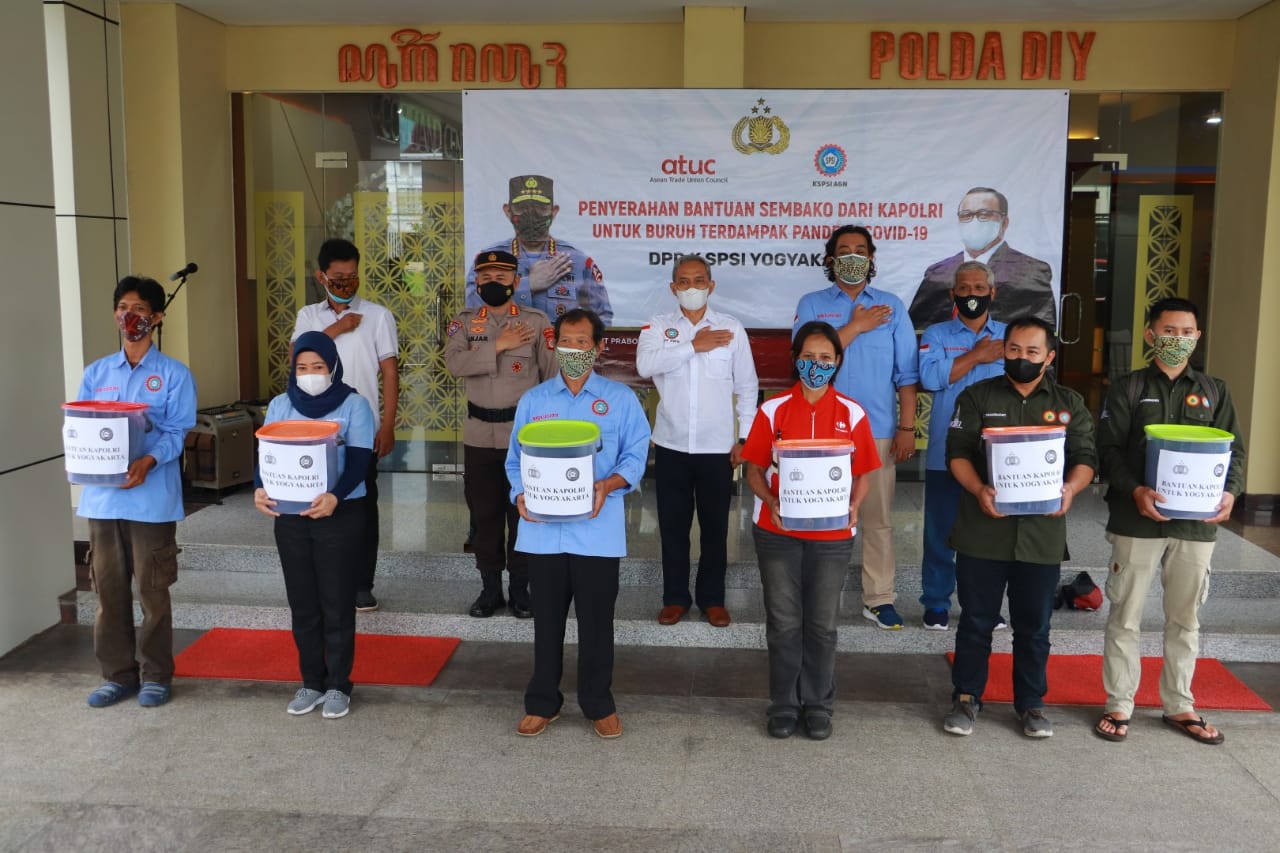 Kegiatan penyerahan bantuan sembako tersebut dilaksanakan di Lobi Mapolda dengan dihadiri oleh Sekjen K. SPSI pusat Hermanto Ahmad serta perwakilan dari anggota Konfederasi Serikat Pekerja Seluruh Indonesia (K. SPSI) DIY.