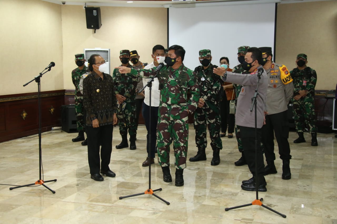 Setelah memberikan pengarahan ke Forkopimda Bali, Panglima TNI dan Kapolri melakukan peninjauan langsung ke Hotel Grand Inna Bali Beach, Sanur Bali yang dijadikan lokasi Isoter. Mereka melihat secara langsung penanganan serta perawatan pasien Covid-19. (Reed)
