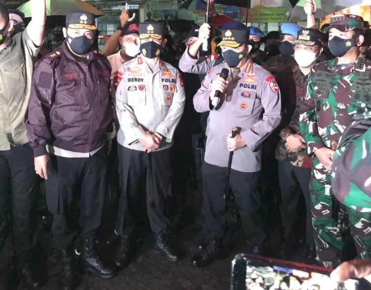 PENJURU.ID | JAKARTA – Kapolri Jenderal Listyo Sigit Prabowo bersama Panglima TNI Marsekal Hadi Tjahjanto meninjau lokasi bom bunuh diri di depan Gereja Katedral Makassar, Sulawesi Selatan pada Minggu (28/3/2021).