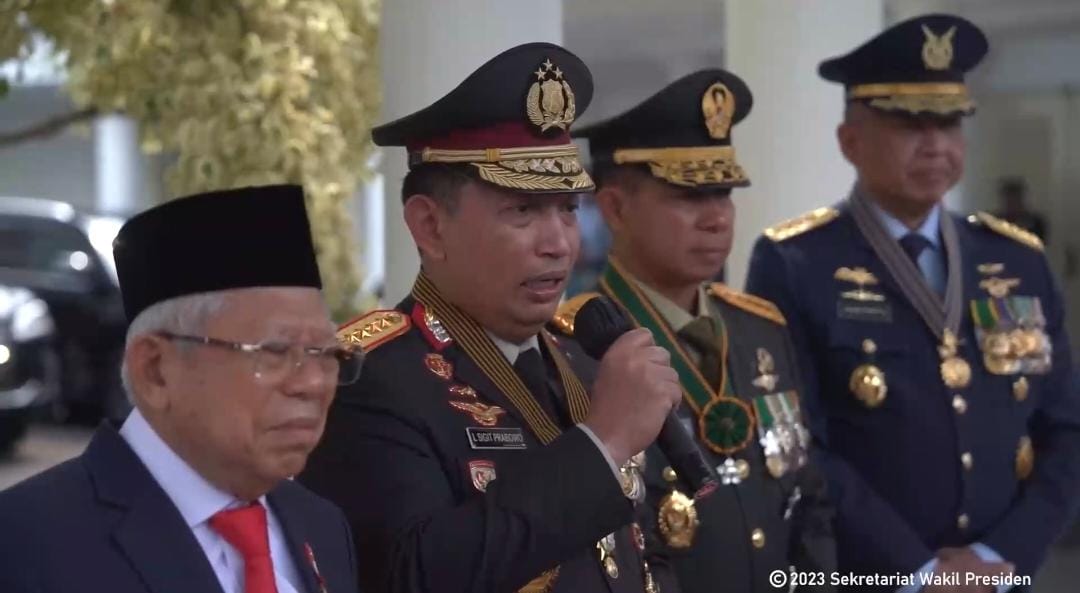 “Dan saya kira ini bukan hanya dilaksanakan pada Pemilu kali ini. Jadi dari semenjak Pemilu ada, maka, Polri mendapatkan tugas untuk melaksanakan pengamanan tahapan Pemilu,” kata Jenderal Sigit dalam jumpa pers usai kegiatan penyematan tanda kehormatan Bintang Yudha Dharma Utama di Istana Wakil Presiden (Wapres), Jakarta, Selasa (14/11).