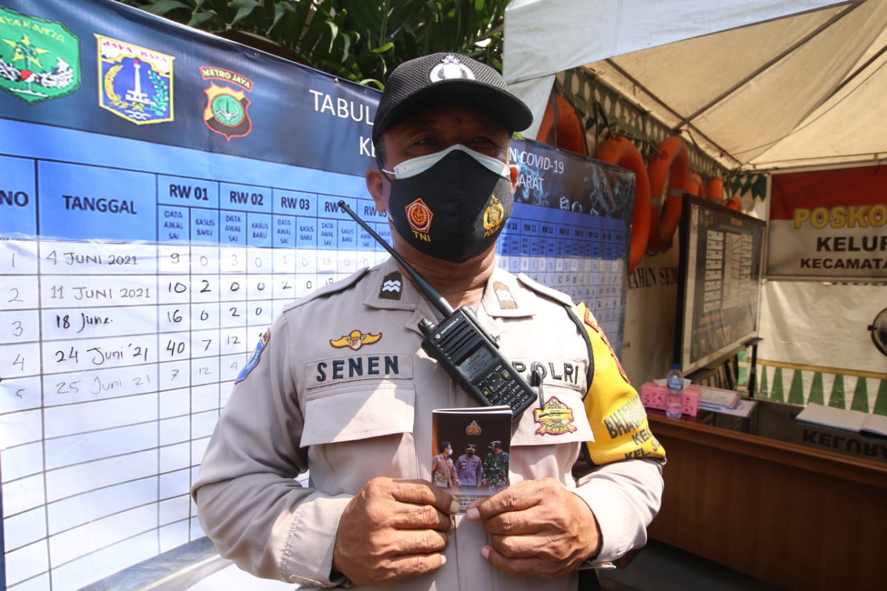 Seorang petugas sempat menunjukan buku tersebut kepada Panglima TNI Marsekal Hadi Tjahjanto dan Kapolri Jenderal Polisi Listyo Sigit Prabowo saat keduanya berkunjung ke Rusun Nagrak dan Posko PPKM Mikro Semper Barat, Jakarta Utara, Minggu (27/6/2021).