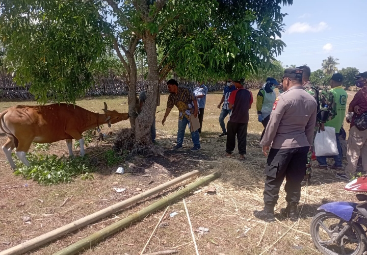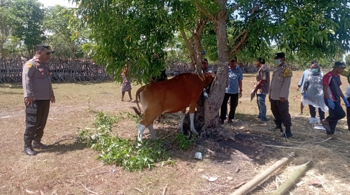 Hadir mendampinginya, Camat Bangkala A.Pattoppoi,S.Sos, Bhabinkamtibmas Aiptu Dri Satoto Hartono, Babinsa Serka Misbahudin dan tim dokter hewan dari dinas peternakan kabupaten jeneponto.
