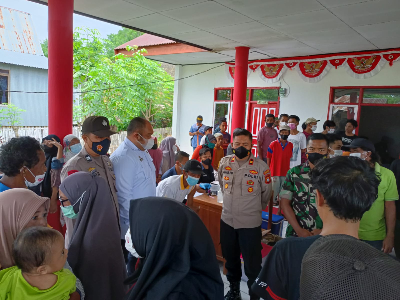 PENJURU. ID | Jeneponto – Kapolsek Binamu IPTU BAHARUDDIN.S.Sos didampingi Kanit Intelkam Polsek Binamu AIPTU MUCHLIS memantau pelaksanaan Vaksinasi secara massal yang dilaksanakan di Wilayah Kecamatan Binamu, Selasa (21/12/2021) Sekitar Pukul 10.00 Wita.