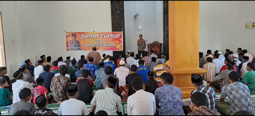 PENJURU. ID | Jeneponto – Kegiatan jumat curhat yang digelar jajaran polsek kelara di Masjid Al Akhirat Kelurahan Tolo Utara Kecamatan Kelara, Kabupaten Jeneponto, Jum’at (20/01/2023) sekitar pukul 13.00 Wita.