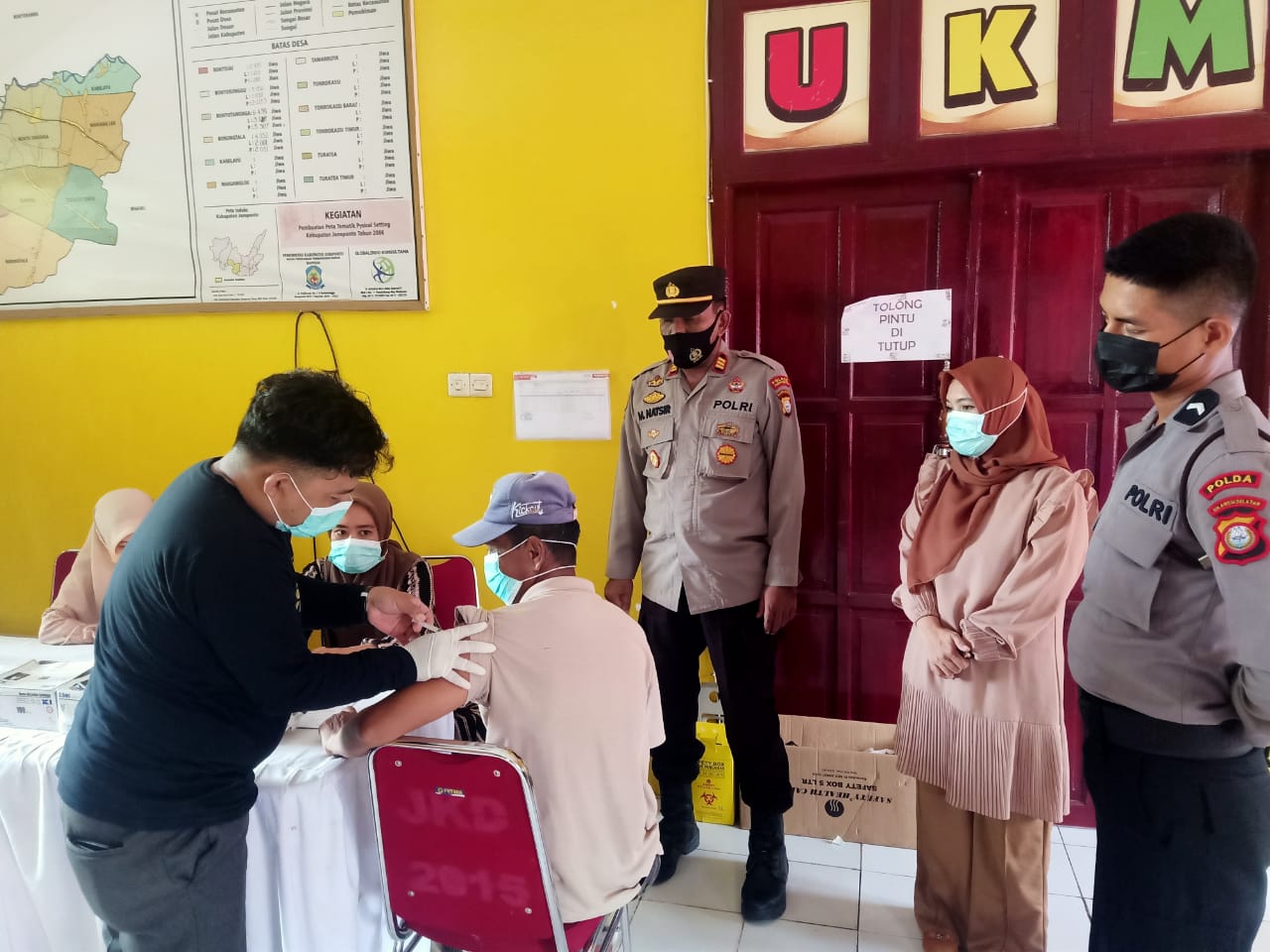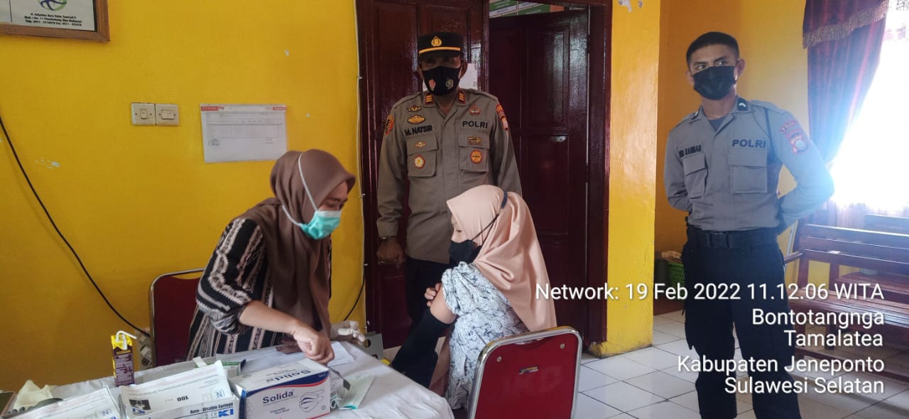 PENJURU. ID | Jeneponto – Personil Polsek Tamalatea dipimpin AKP M.Natsir,S.Sos memantau pelaksanaan vaksinasi di Puskesmas Tamalatea, Sabtu (19/2/2022)