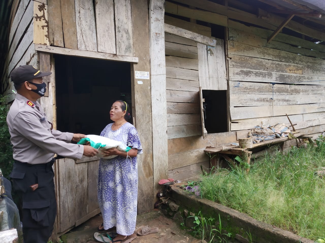 Bertempat di Wilayah Hukum Polsek Tellulimpoe menyambangi secara door to door rumah warga yang memerlukan bantuan atau kesulitan ekonomi selama wabah virus corona atau Covid-19.