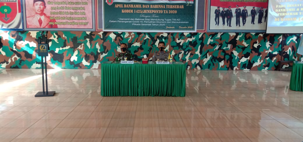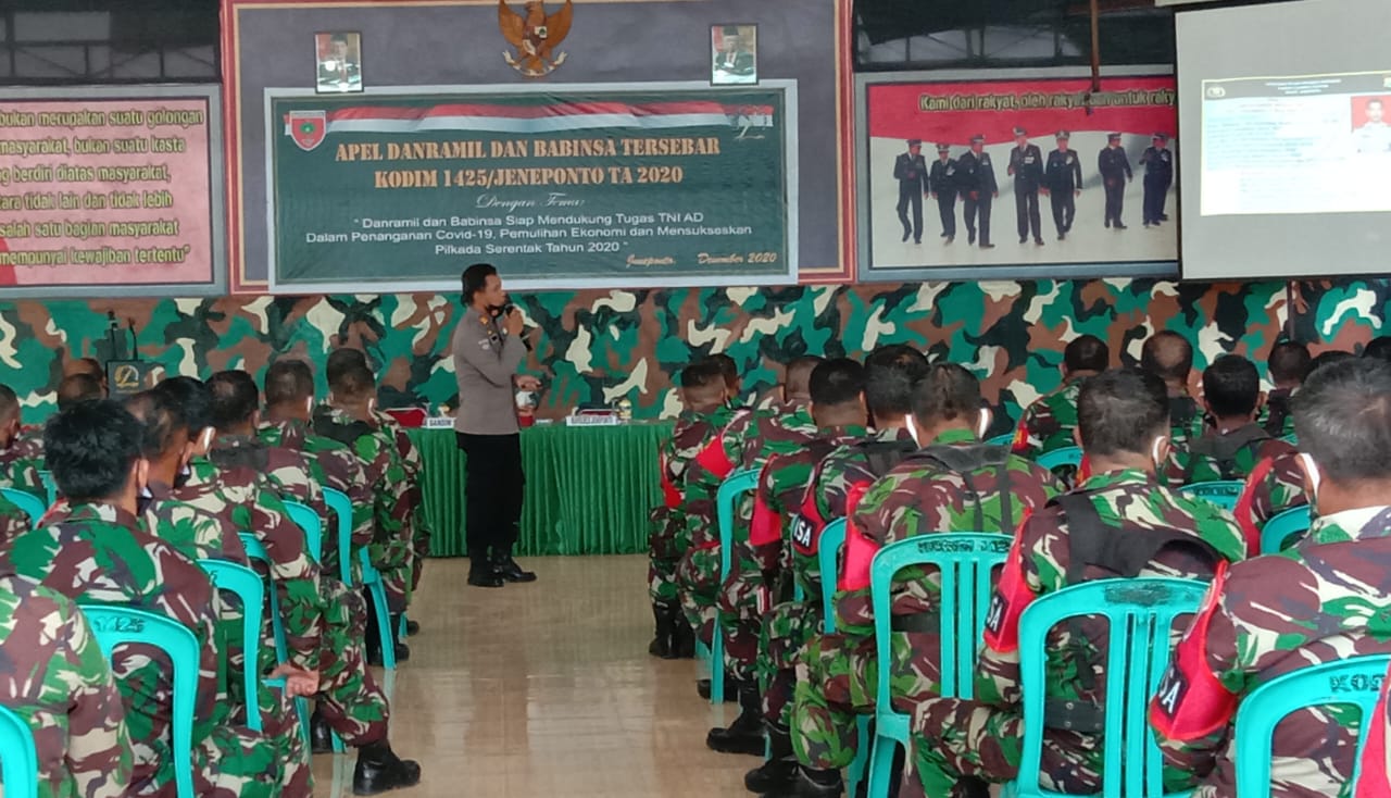 PENJURU. ID | Jeneponto – Kasat Binmas Polres Jeneponto AKP. SYAHRUL, S.H mewakili Kapolres Jeneponto Sebagai Pemateri dalam kegiatan Apel Danramil dan Babinsa tersebar Kodim 1425/Jeneponto TA 2020, dengan Tema ” Danramil dan Babinsa Mendukung Tugas TNI AD.
