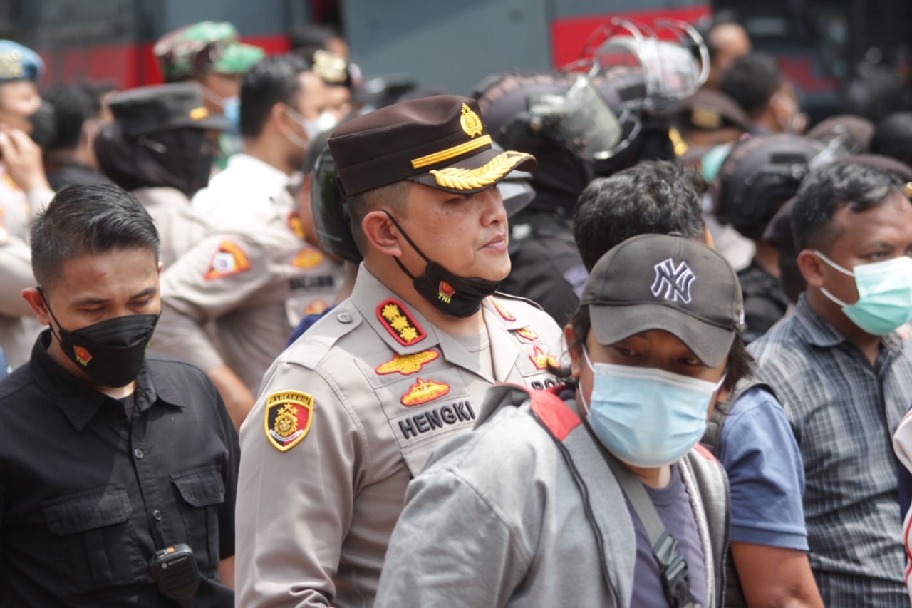 “Yang bersangkutan sudah kita himbau untuk bergeser di tempat yang sudah kita tentukan, tapi menolak bahkan menutup jalan dan lebih fatal lagi melakukan perlawanan dengan menggunakan alat, melakukan penganiayaan terhadap pihak kepolisian yang notabenenya ini adalah menjaga, mengamankan, melayani aksi mereka” ucap Hengki.