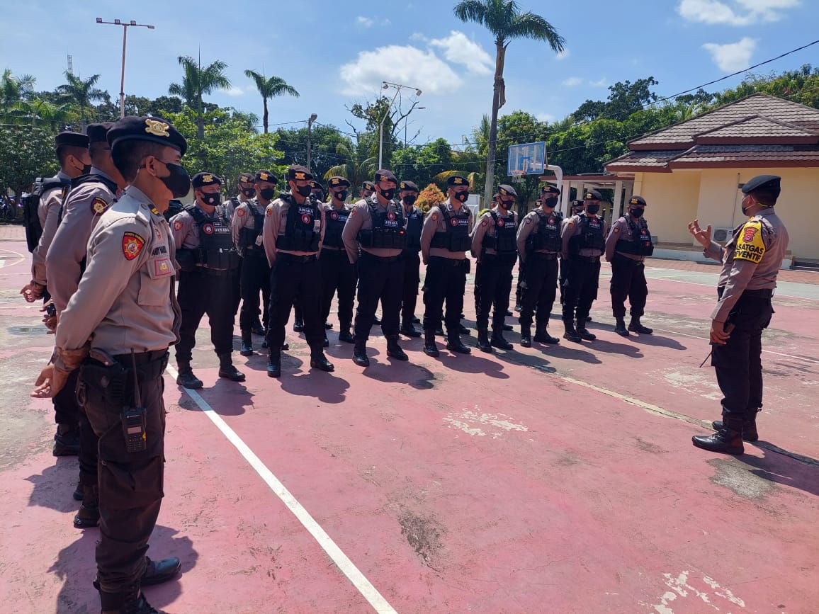 Cilegon – kasat samapta Polres Cilegon Polda Banten laksanakan pengecekan alat alat kelengkapan diri personil dalam rangka antisipasi Erupsi gunung Krakatau,Selasa 26-4-22.