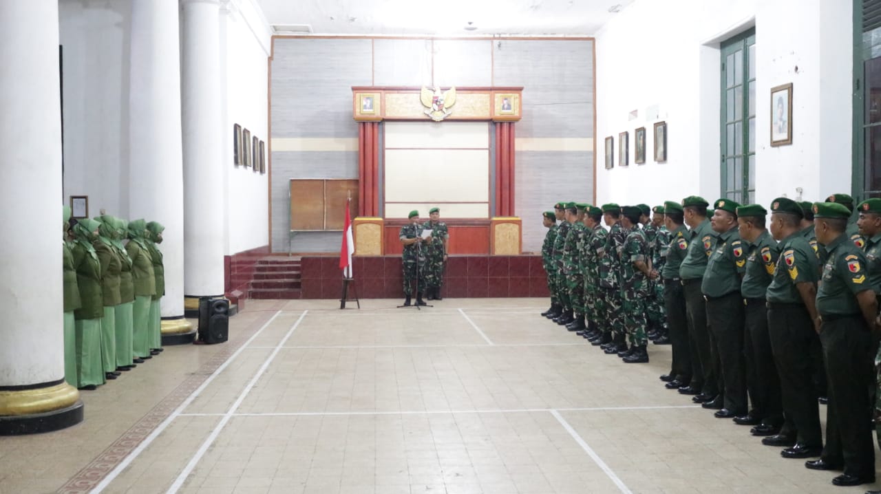 PENJURU.ID | Probolingo – Kasdim 0820 Probolinggo Mayor Czi Slamet Wahyudi memimpin langsung upacara Kenaikan Pangkat pangkat Periode 01 Oktober anggota Kodim 0820 Probolinggo yang bertempat di Aula Makodim 0820/Probolinggo, jalan Panglima Sudirman No.73 Kota Probolinggo. Minggu (02-10-2022).