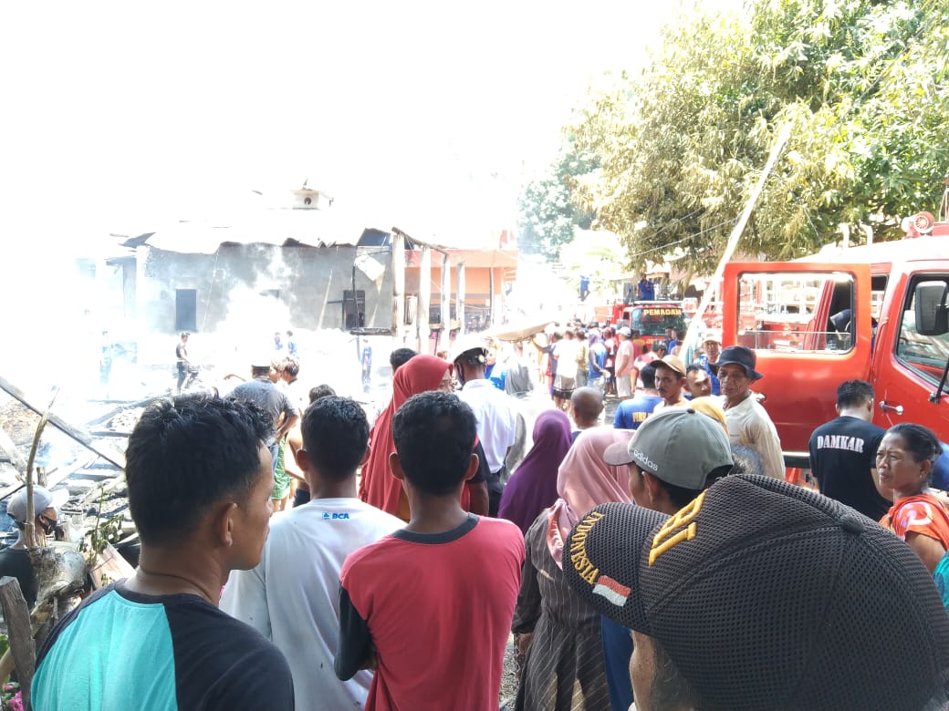 Meskipun telah turun tim pemadam kebakaran sebanyak 4 (empat) unit mobil karena kondisi cuaca yang panas dan kering serta tiupan angin yang kencang, api dengan mudah menghanguskan 2 (dua) unit rumah beserta dengan isinya.