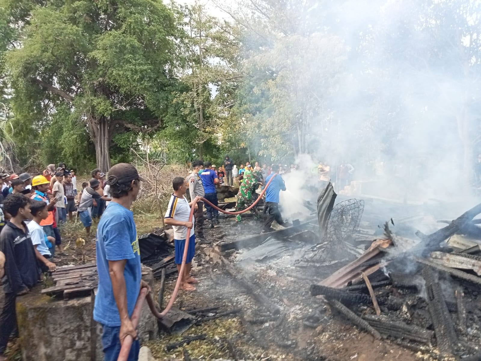 “Sekitar pukul 14.40 Wita api yang membakar rumah panggung tersebut dapat dipadamkan oleh warga sekitar dan petugas Damkar” Ujar Kapolsek