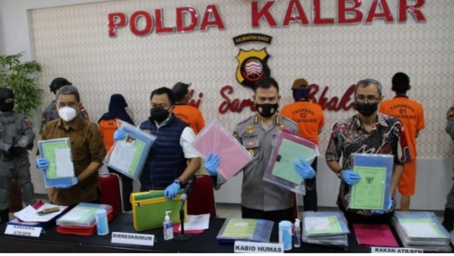 “Pada bulan Maret 2021 Polda Kalbar berhasil mengungkap kahsus tindak pidana pemalsuan surat yang berkaitan dengan beberapa sertifikat hak milik tanah dan menimbulkan adanya kerugian masyarakat,” ungkap Luthfie pada acara Press Conference, Kamis(22/4/2021).