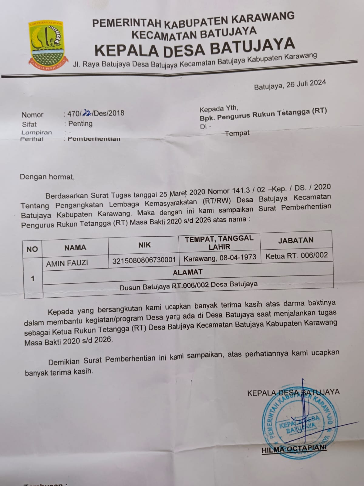 Karawang — Baru-baru ini, kasus pemberhentian dua ketua RT di desa Batujaya, Kecamatan Batujaya, Kabupaten Karawang, Jawa Barat, oleh kepala desa tanpa alasan yang jelas menjadi perbincangan hangat di masyarakat.