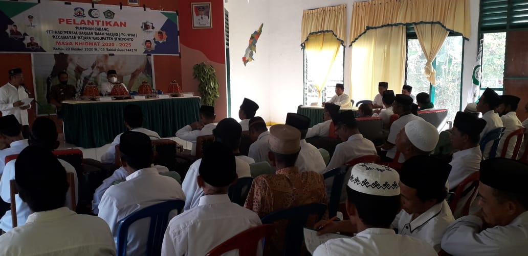 PENJURU. ID | Jeneponto – Pimpinan Daerah Ittihad Persaudaraan Imam Masjid (PD IPIM) Kabupaten Jeneponto Provinsi Sulawesi Selatan melakukan pelantikan cabang ke enam setelah 5 (lima) Pimpinan Cabang (PC) sebelumnya (Binamu-Turatea-Bangkala Barat dan Bangkala), kali ini pelantikan PC IPIM Kecamatan Rumbia dan Kelara digelar Kamis (22/10/2020).